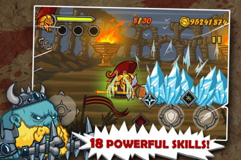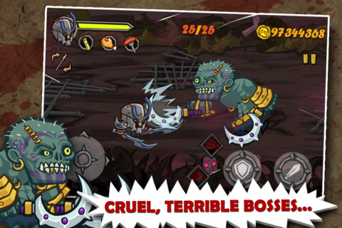 游戏的操作比较容易上手,左边是方向键,右边是攻击、防守(躲避)、技能,左上方显示主角的血量,快捷道具栏和武器切换图标,画面上方会显示本关杀敌数,右上方显示金钱。战斗手感略微生硬,2头身的人物造型看起来有点
