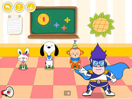 小朋友,你好!我是呆呆超人!快来帮我指挥小动物做动作吧!请你听指令,点一点相应的小动物,它们就能做出正确的动作了!点击小喇叭,就可以重新听一遍指令哦!