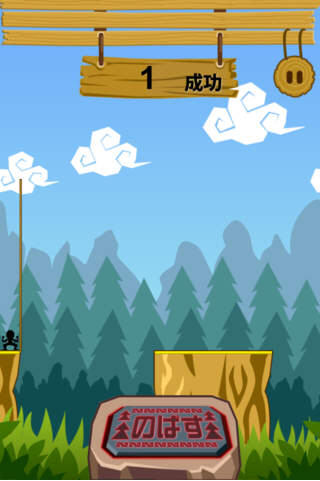 游戏的操作只能用「简单」两字形容,整个游戏只有一个按钮,有看到位于游戏画面正下方大大的「のばす(伸长)」按钮吗?就是它,用你的食指(当然不用食指也行)按下它后别放开,小火柴人的面前就会有根棒子开始以一定的速率伸长,当玩家放开按钮,棒子就会停止伸长并向前倒下变成桥梁,让小火柴人能够跨越间隔走到下一段木头上,而这样就算一次 CLEAR,游戏的目标就是比比看谁能让火柴人走过越多段树木。