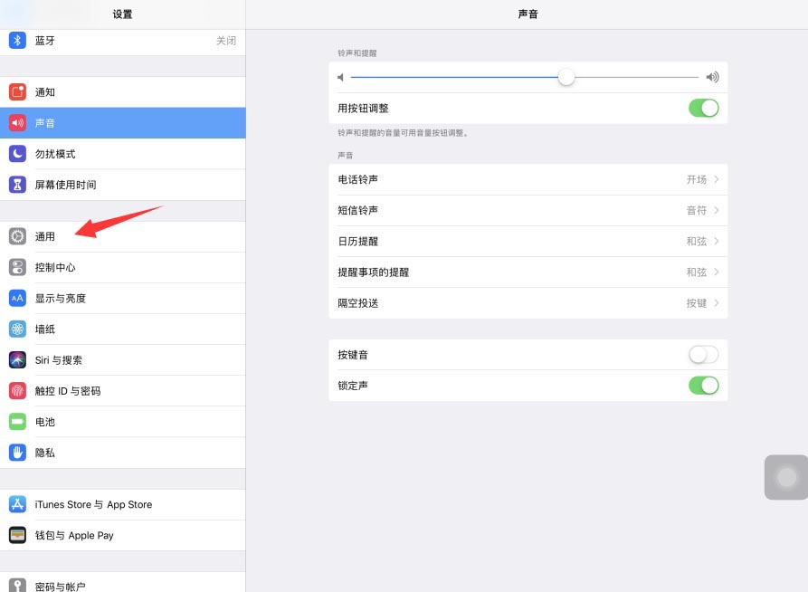 1、在iPad Pro平板电脑中打开设置页面,点击通用栏目